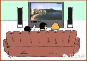 晚上20:00时,全家人坐到了电视机旁边,按下“家庭影院”场景键,电视机打开,灯光变暗,开始欣赏节目。