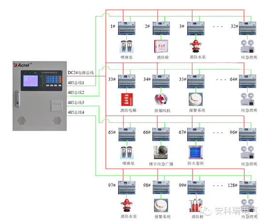 项目简述 福清万达广场位于福清市清昌大道北侧,西环路东侧,清宏路南侧,总建筑面积41万平米,涵盖购物中心、室外步行街、5A甲级写字楼、高档住宅四大业态,集购物、休闲、娱乐、商务、居住等多种城市功能,将引进大型超市、连锁百货、国际影城、量贩式KTV及数百家流行、时尚品牌商家,建成后将成为福清体量最大、商业档次最高的商业中心和城市地标建筑,最大程度地满足城市各阶层消费者对商业设施与服务的全方位、多元化需求。针对此广场特点,安科瑞电气股份有限公司进行了此项目的消防设备电源监控系统的设计与实施。需求分析 探测消防设备电源的过压、欠压、缺相、供电中断度等信号,发出声光信号报警,准确报出故障线路地址,监视故障点的变化。储存各种故障和操作试验信号,显示系统电源状态。参考标准GB25506-2010《消防控制室通用技术要求》,在条文 5.7 消防电源监控器应符合下列要求:a)应能显示消防用电设备的供电电源和备用电源的工作状态和故障报警信息。b)应能将消防用电设备的供电电源和备用电源的工作状态和欠压报警信息传输给消防控制室图形显示装置。GB 28184-2011 《消防设备电源监控系统》GB 50116-2013《火灾自动报警系统设计规范》系统组成 福清万达广场消防设备电源监控系统项目由消防设备电源监测后台,防设备电源探测器组成。 AFPM100消防设备电源监控系统采用,消防设备电源状态监控器+电压/电流传感器的两层结构组网模式。整个监控系统功能全面,安全可靠,探测准确,性价比高,系统内部采用RS485网络通信,对外提供Modbus-RTU通信协议,以满足其他标准系统的连接,以上所述组成一套信号稳定,精度可靠的消防设备电源监测系统。本系统组网共分为三层:1)站控管理层 站控管理层针对电气火灾监控系统的管理人员,是人机交互的直接窗口,也是系统的最上层部分。主要由系统软件和必要的硬件设备,如触摸屏、UPS电源等组成。监测系统软件对现场各类数据信息计算、分析、处理,并以图形、数显、声音、指示灯等方式反应现场运情况。 监控主机:用于数据采集、处理和数据转发。为系统内或外部提供数据接口,进行系统管理、维护和分析工作。 UPS:保证计算机监测系统的正常供电,在整个系统发生供电问题时,保证站控管理层设备的正常运行。2)网络通讯层 通讯介质:系统主要采用屏蔽双绞线,以RS485接口,MODBUS通讯协议实现现场设备与上位机的实时通讯。3)现场设备层 现场设备层是数据采集终端,主要为AFPM100系列消防设备电源监控探测器。功能分析 福清万达广场使用的AFPM100消防设备电源状态监控器是AFPM消防设备电源监控系统的核心,监控设备通过RS485总线与多台传感器相连,构成集散式消防设备电源监控系统,实时监控消防设备电源的工作状态。本设备结构合理、可靠性高、功能较强、维护方便、性价比高,系统界面直观、易用。