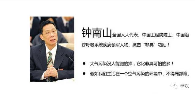 连钟南山院士也在说:空气污染要比非典更可怕,我们生活在空气污染的环境中不得病都难,换句话说,我们得病是很正常的。